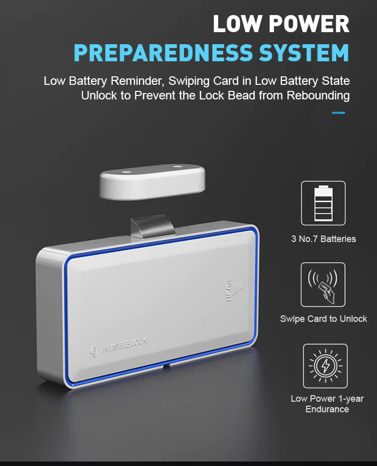 Ein unsichtbares RFID-Schubladenschloss dient zur Sicherung von Schubladen, Schränken oder Fächern mithilfe der RFID-Technologie (Radio Frequency Identification), ohne sichtbar zu sein. Sein Hauptzweck ist die komfortable, sichere und diskrete Zugangskontrolle in verschiedenen Umgebungen.