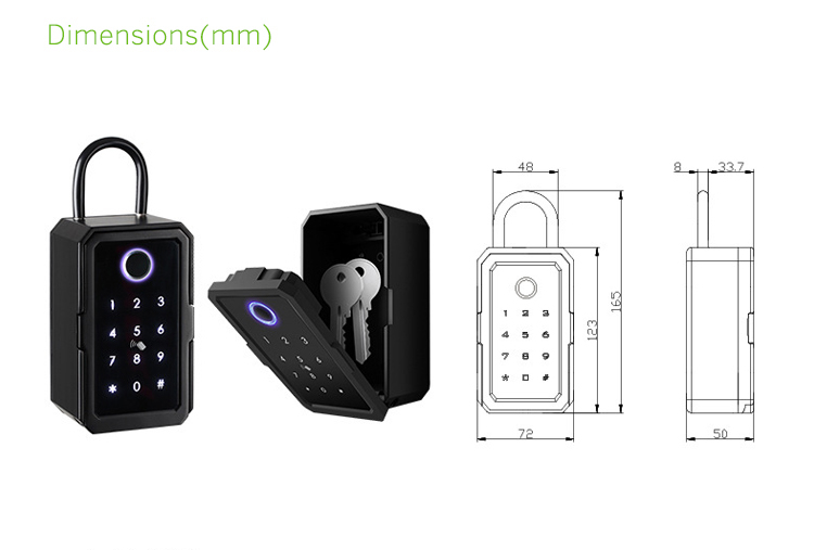 5-7daysWasserdichter Sicherheitsschlüsselkasten Tuya/TTlock Fingerabdruck-Bluetooth-Schlüsselkasten mit App-Fernzugriff Wandmontage